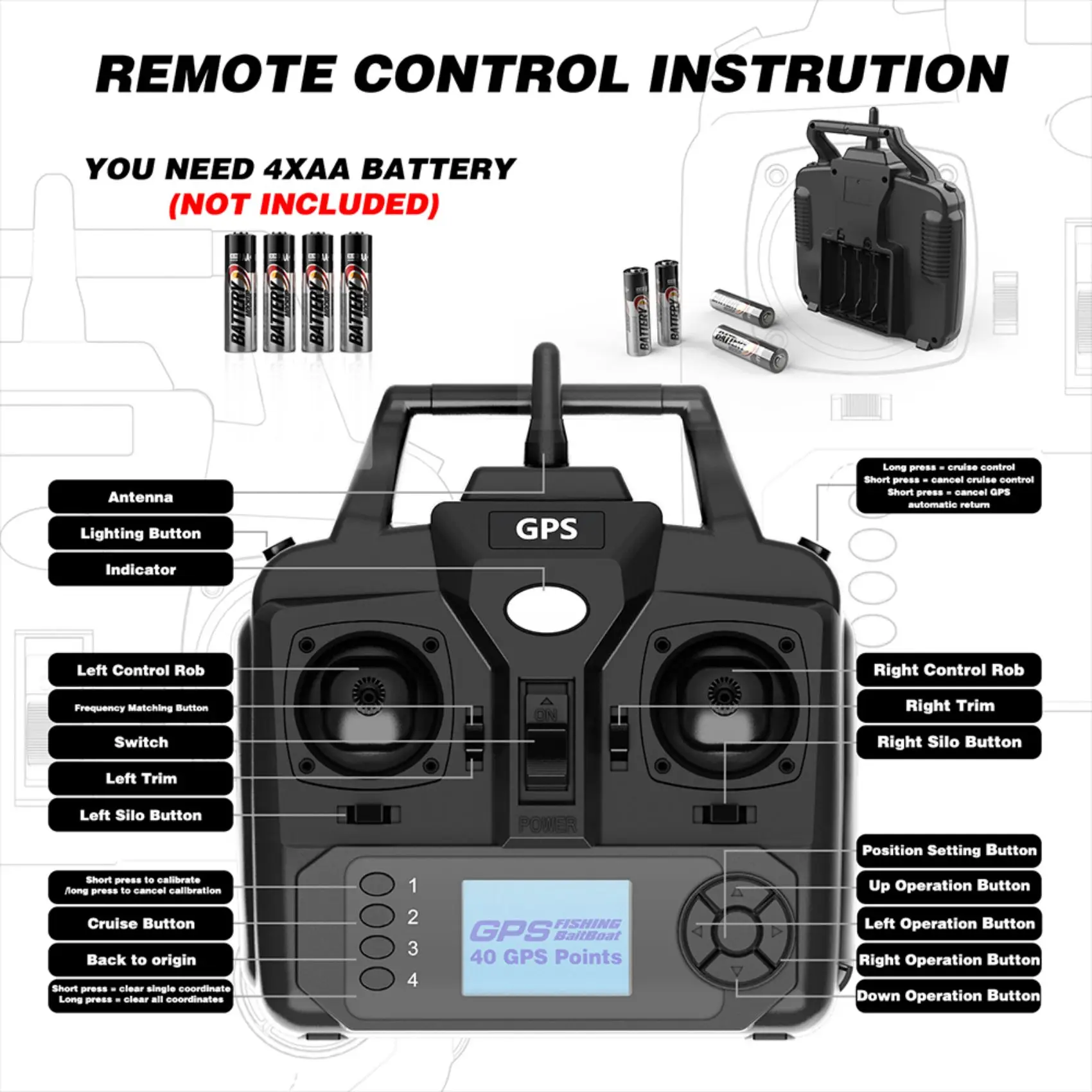 High-tech GPS bait boat, dual motors 500m remote control range and 2KG loading capacity